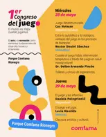 La primera edición del Congreso del Juego Comfama serás una experiencia para quienes viven el juego desde la pasión, la curiosidad y el deseo de transformar el mundo. Profesionales, expertos, creadores, educadores y entusiastas se reunirán para compartir saberes, debatir ideas y proponer nuevas formas de entender el juego en nuestra sociedad con conferencias, paneles, sesiones interactivas y experiencias inmersivas, además de presentaciones culturales, juegos, juguetes, tecnología, arte y mucho más.