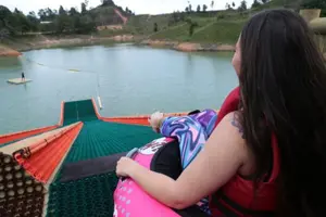 ¿Te imaginas vivir un día repleto de sorpresas, sonrisas y conexión natural con una piedra de dimensiones titánicas como la guardiana de tu diversión? ¡En nuestro Parque Comfama Guatapé es posible! Su paisaje parece haber sido extraído de un relato de realismo mágico: bosques hospedadores de sirirís y azulejos, musgos naranjas y montañas que brotan en armonía de un embalse verde y sereno. Aquí confluyen los extraordinarios pigmentos de la naturaleza y las historias de un pueblo que también baila en color.