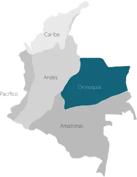 Los Llanos Orientales, están ubicados al oriente del país y limita con la región andina al oeste, con Venezuela al este y con la Amazonia en el sur. Determinada por la cuenca del río Orinoco, es un ecosistema que se caracteriza por ser una planicie y que cuenta con temperaturas promedio durante todo el año que oscilan entre los 24°C y 28°C.
