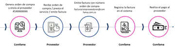Ten presente que antes de la prestación de tu servicio debes recibir una orden de compra que empieza con el número 45, ejemplo: 4500202005. Este documento será emitido por la persona en Comfama que está encargada de administrar tu contrato y es necesario que incluyas el número en tu factura para garantizar el correcto flujo de tu pago.
