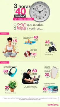 ¿Cuánto tiempo al día inviertes navegando en redes sociales? Con base en ese dato sobre el uso de las redes sociales en Colombia, te proponemos tres alternativas que puedes probar y alternar como quieras: